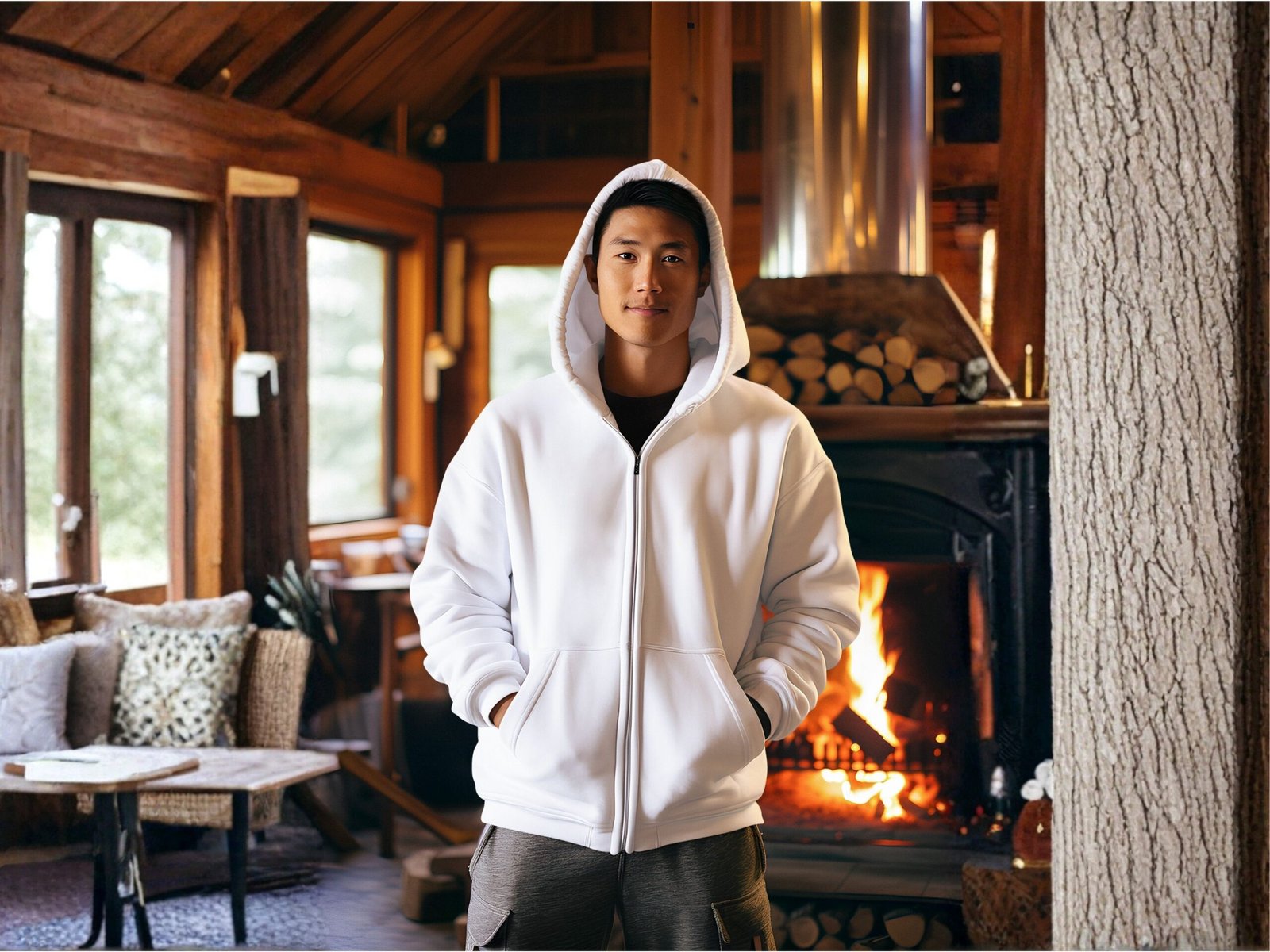 White Zipper Hoodie